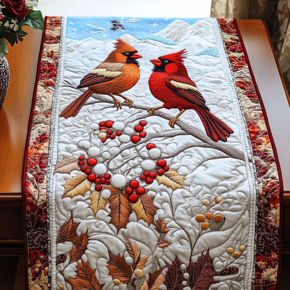 Berry Cardinals Quilted Table Runner