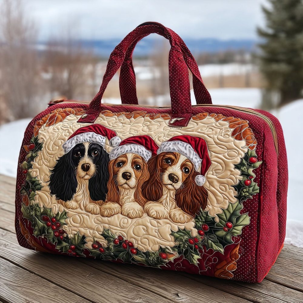 quilted duffle bag,spaniel duffel,cocker spaniel bag,dog lover weekender,dog print travel bag,overnight carry-on,gym duffel,pet owner gift,weekend bag,quilted travel bag,cottagecore accessory,animal print duffel,padded weekender,pet portrait bag,travel bag for dog lovers,cute travel duffel,paw print bag