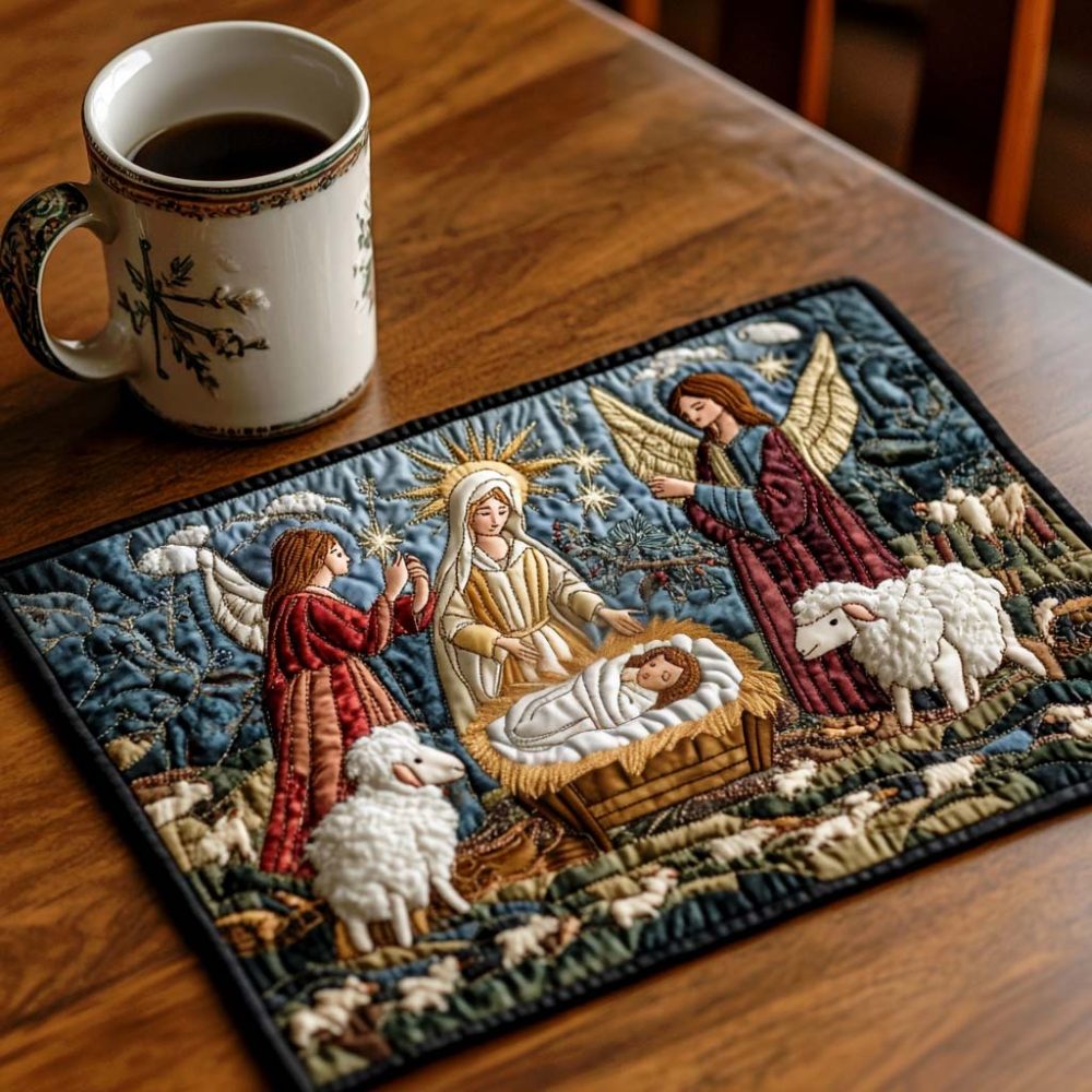 Bethlehem placemat,starlight placemat,holiday placemat,quilted nativity table mat,cotton table placemat,seasonal table decor,machine washable
