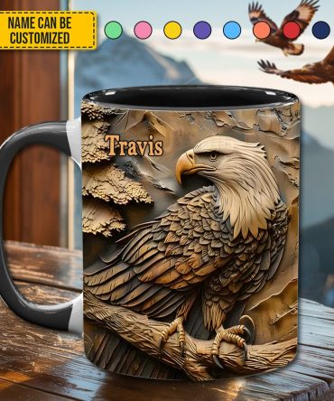 - High quality ceramic mug with two-tone rim, interior, & handle
