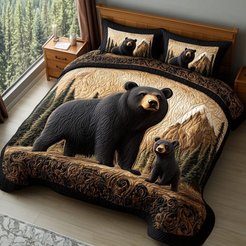 Black Bear Charm 3-Piece Quilted Bedding Set