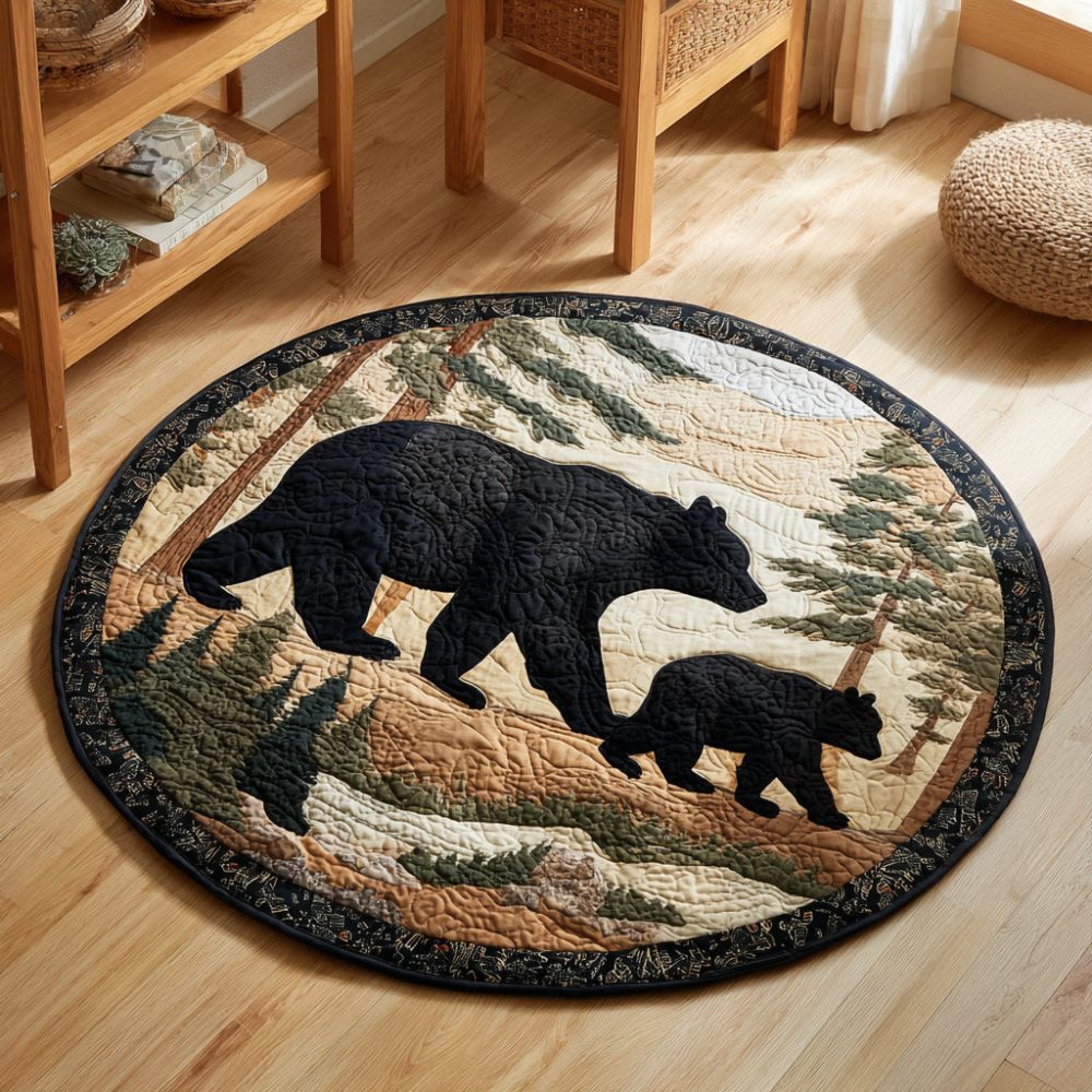 Black Bears Journey Quilted Round Mat