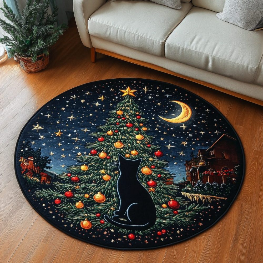 Black Cat Magic Quilted Round Mat