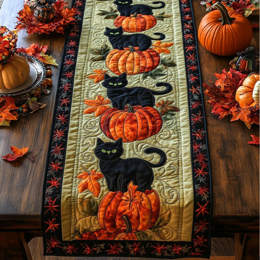 Black Cat Whispers Quilted Table Runner