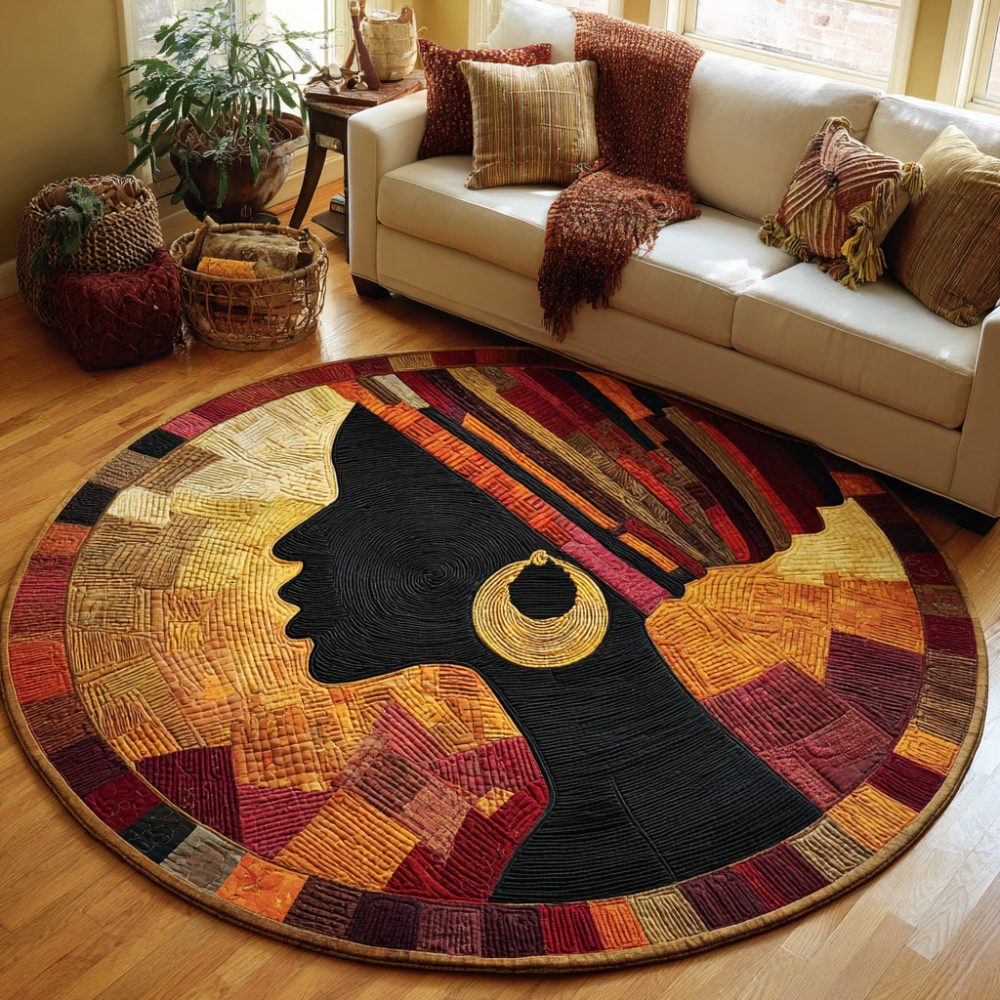 Be the first to review “Black Woman Golden Aura Quilted Round Mat”