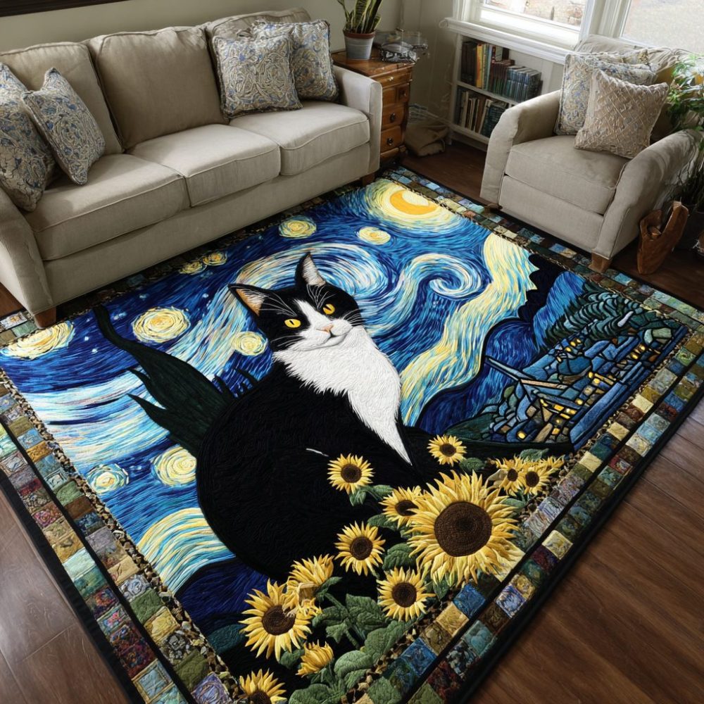 blissful cat rug,modern cat rug,decorative area rug,cat art rug,low-pile durable rug,non-slip accent rug,living room rug