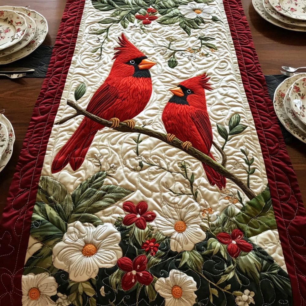 Blossom Cardinal Quilted Table Runner