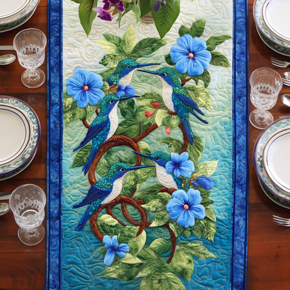 Blue Blossom Dance Quilted Table Runner