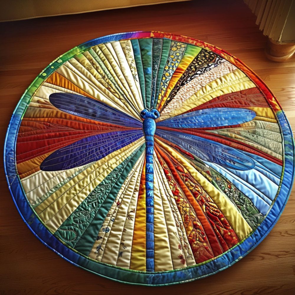 Blue Serenity Dragonfly Quilted Round Mat