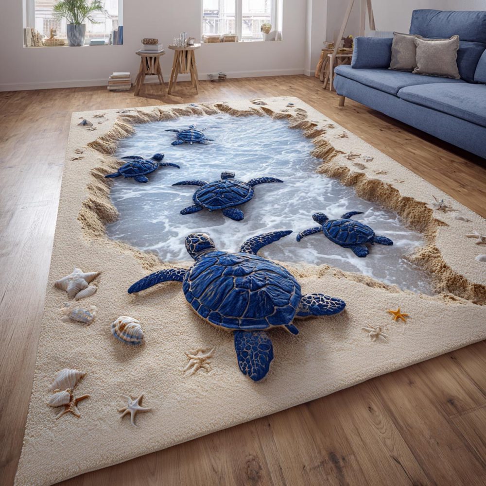 turtle rug,blue turtle area rug,kids coastal rug,soft pile play rug,durable family rug,easy clean area rug
