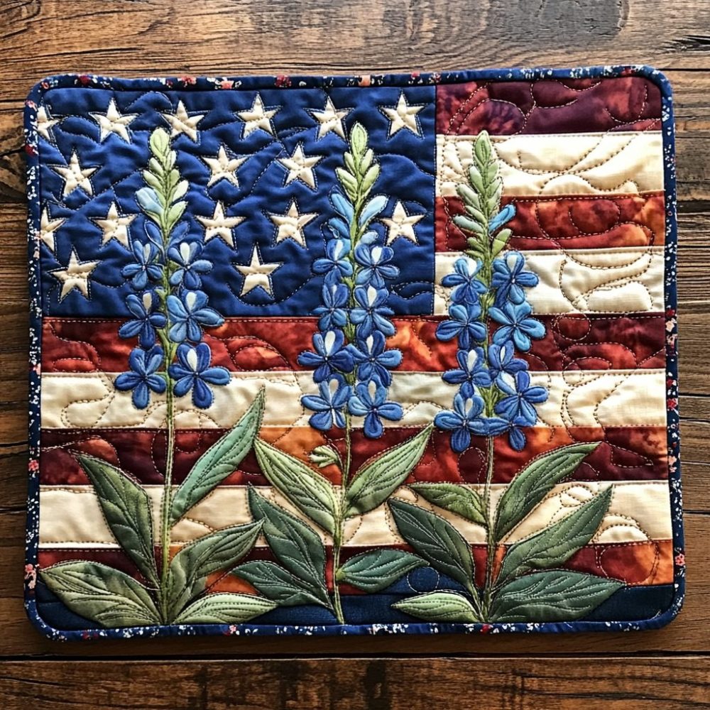 Bluebonnet Quilted Table Placemat — Texan Wildflower Cotton Dining Mat, Stitched Protection, Machine Washable Decorative Mat