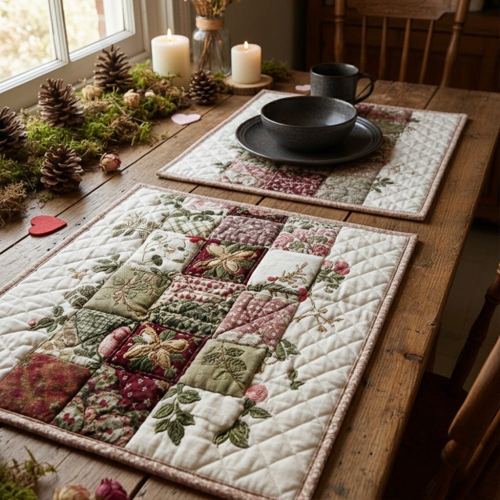 blush floral placemat,heirloom placemat,quilted placemat,vintage table mat,table decor,kitchen placemat,soft blush dining mat,machine washable