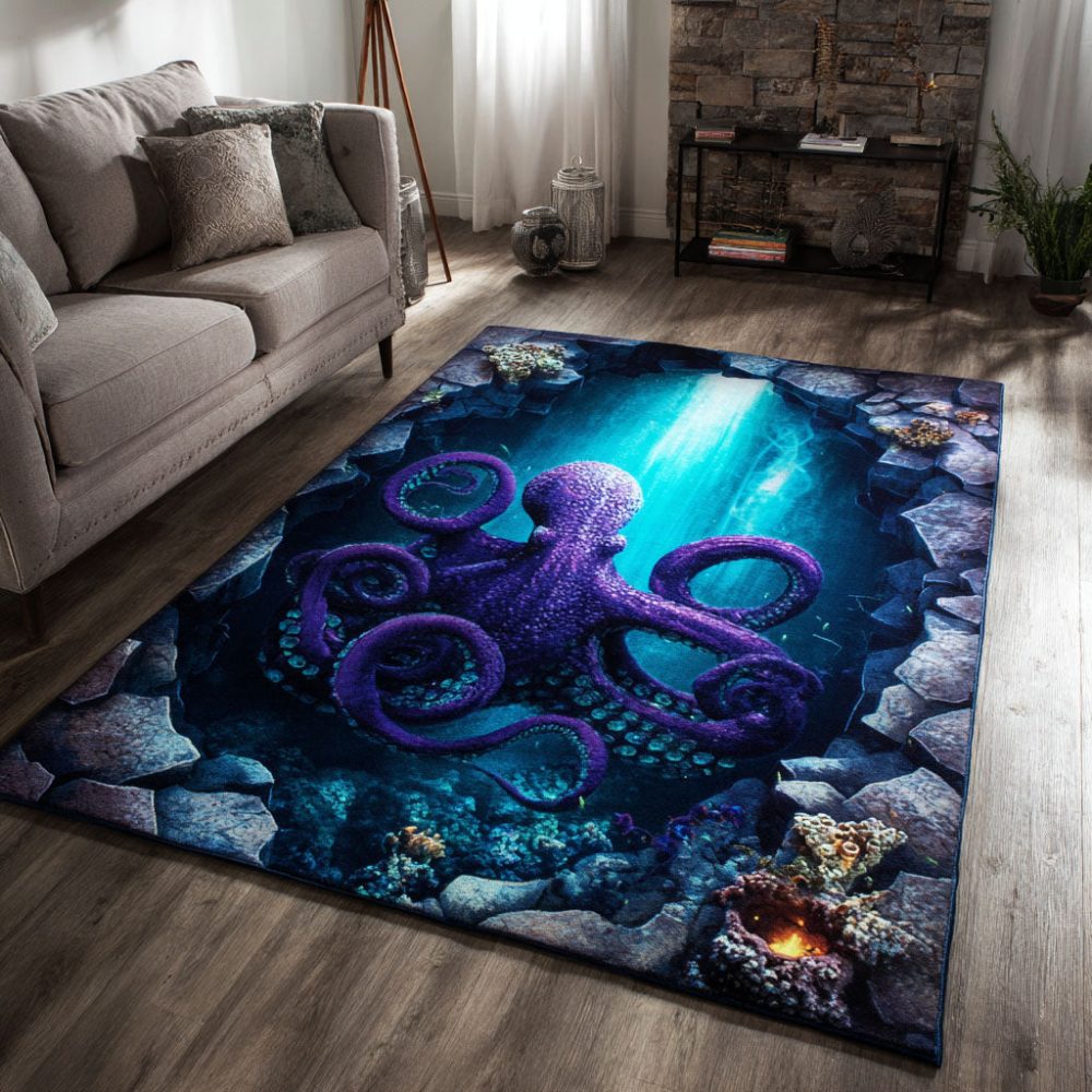Bold Deep-Octopus Area Rug — Vibrant Marine Octopus Accent Rug, Plush Low-Pile Nautical Decor For Living Room & Kids’ Spaces