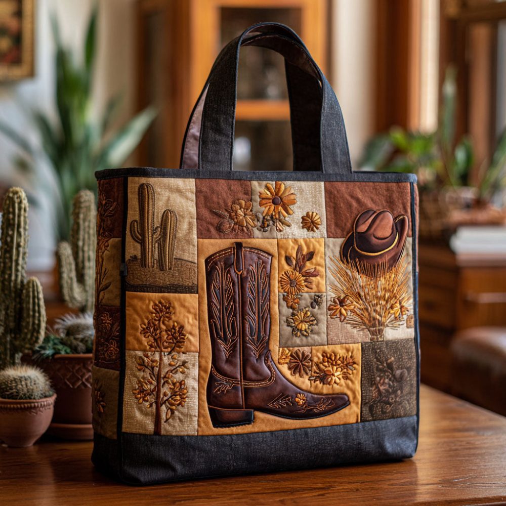 Boots And Blossoms Quilted Tote Bag