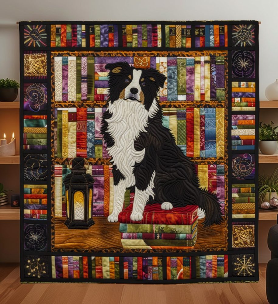 Border Collie Of Knowledge Quilted Blanket