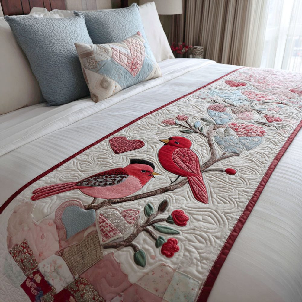 Botanical Birdsong Quilted Bed Runner — Garden Floral Bed Scarf For Stylish Bedding, Quilted Accent Layer To Elevate Bedroom Decor