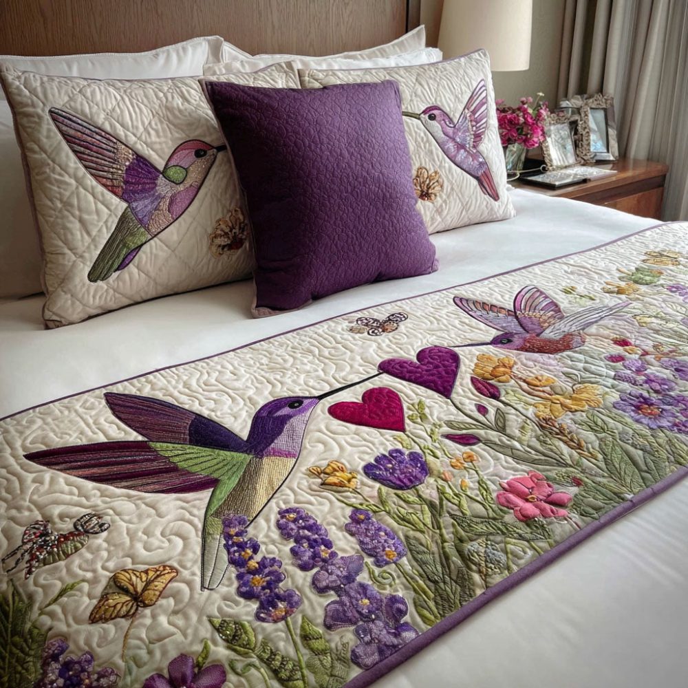 botanical bed runner,quilted bed scarf,nature motif runner,reversible bed runner,cotton blend bed runner,lightweight decorative runner,bedroom accent,floral bed runner