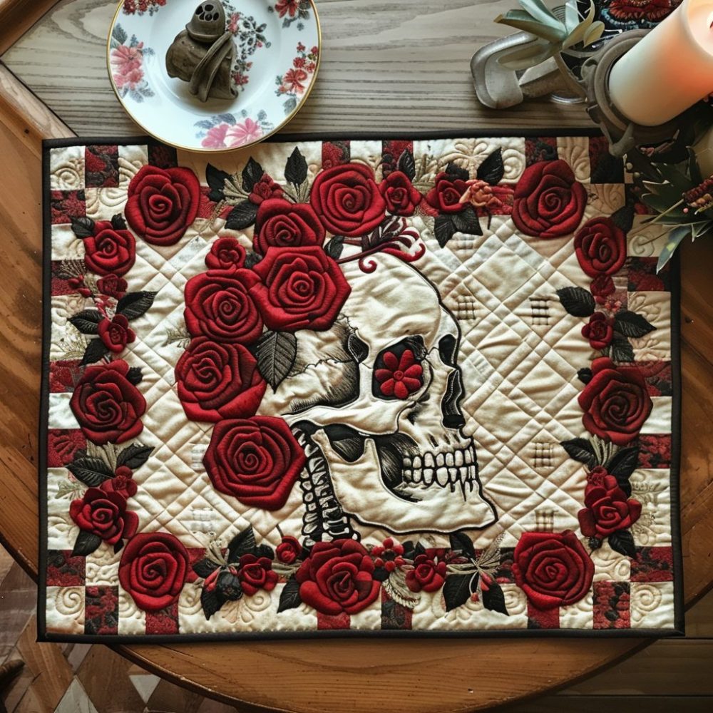 Embrace moody romance with the Bouquet of Bones quilted placemat, blending skeletal elements and floral accents into a striking dark-design placemat. Quilted cotton construction adds heat protection and durability while remaining soft to the touch. Machine washable and colorfast for easy upkeep, it’s perfect for gothic-chic decor, Halloween gatherings, or anyone who favors alternative floral aesthetics.