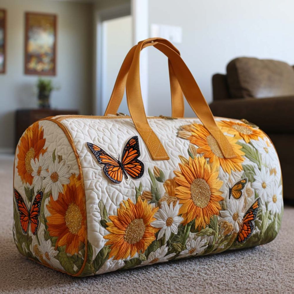 bright fields duffle bag, quilted travel bag, floral gym bag, stylish overnight bag, nature-inspired tote, bohemian carry-on, unique duffle bag, weekend getaway accessory, fashionable gym duffle, trendy travel bag, vibrant floral design, chic overnight bag, versatile travel accessory, stylish gym tote, colorful duffle bag, boho duffle bag, aesthetic travel bag, modern floral bag, travel essentials