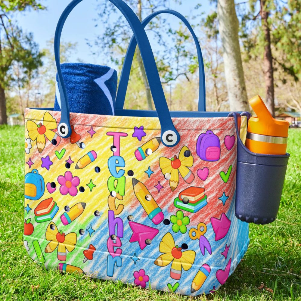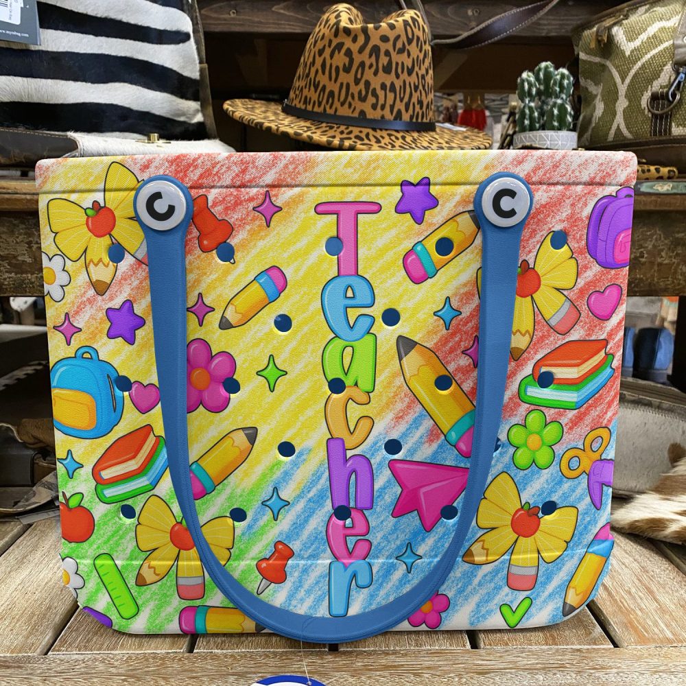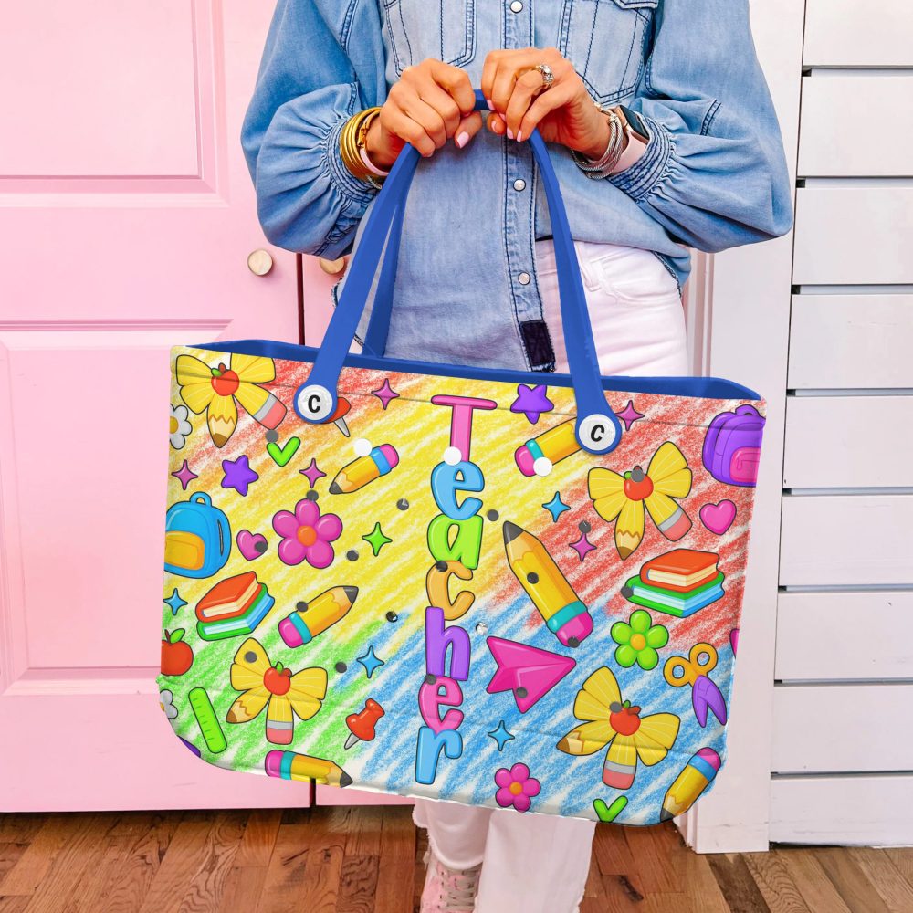Be the first to review “Bright Teacher Tote Bag – Colorful School Supplies Design For Educators”