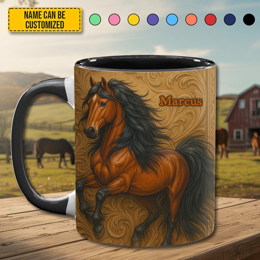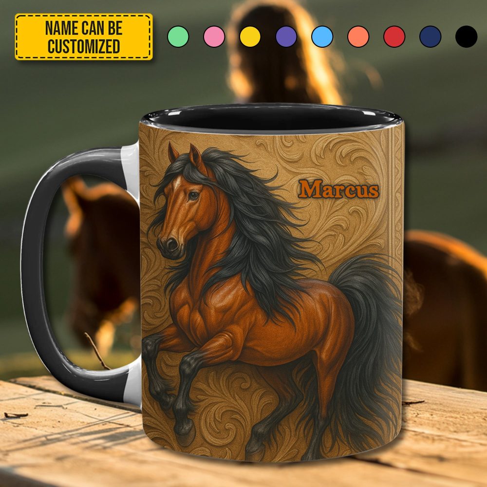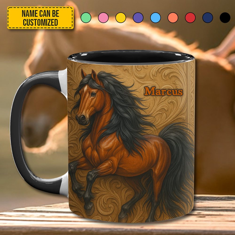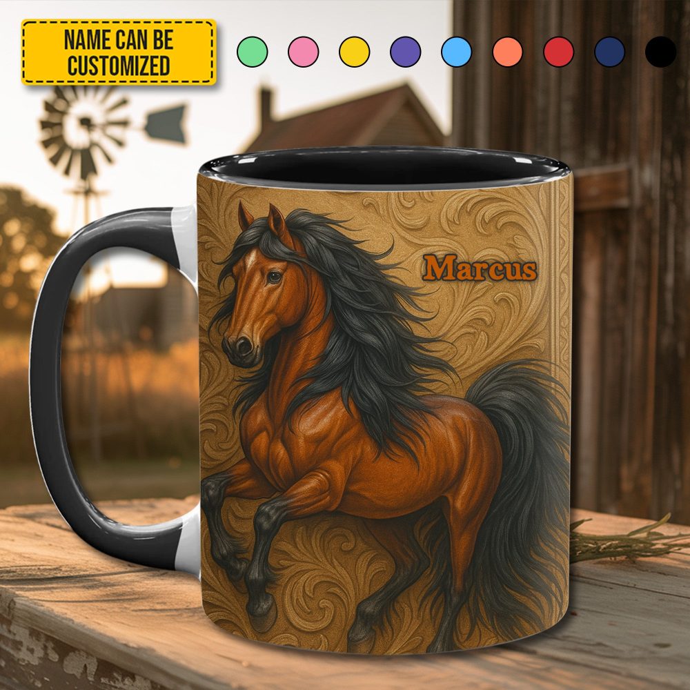 - High quality ceramic mug with two-tone rim, interior, & handle