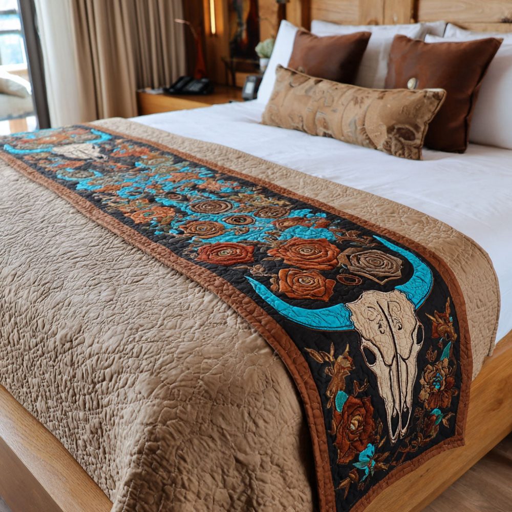 Buckaroo Bloom Quilted Bed Runner – Rustic Floral & Western Flair, Durable Quilting For Country Bedrooms, Ranch-Ready Accent Piece