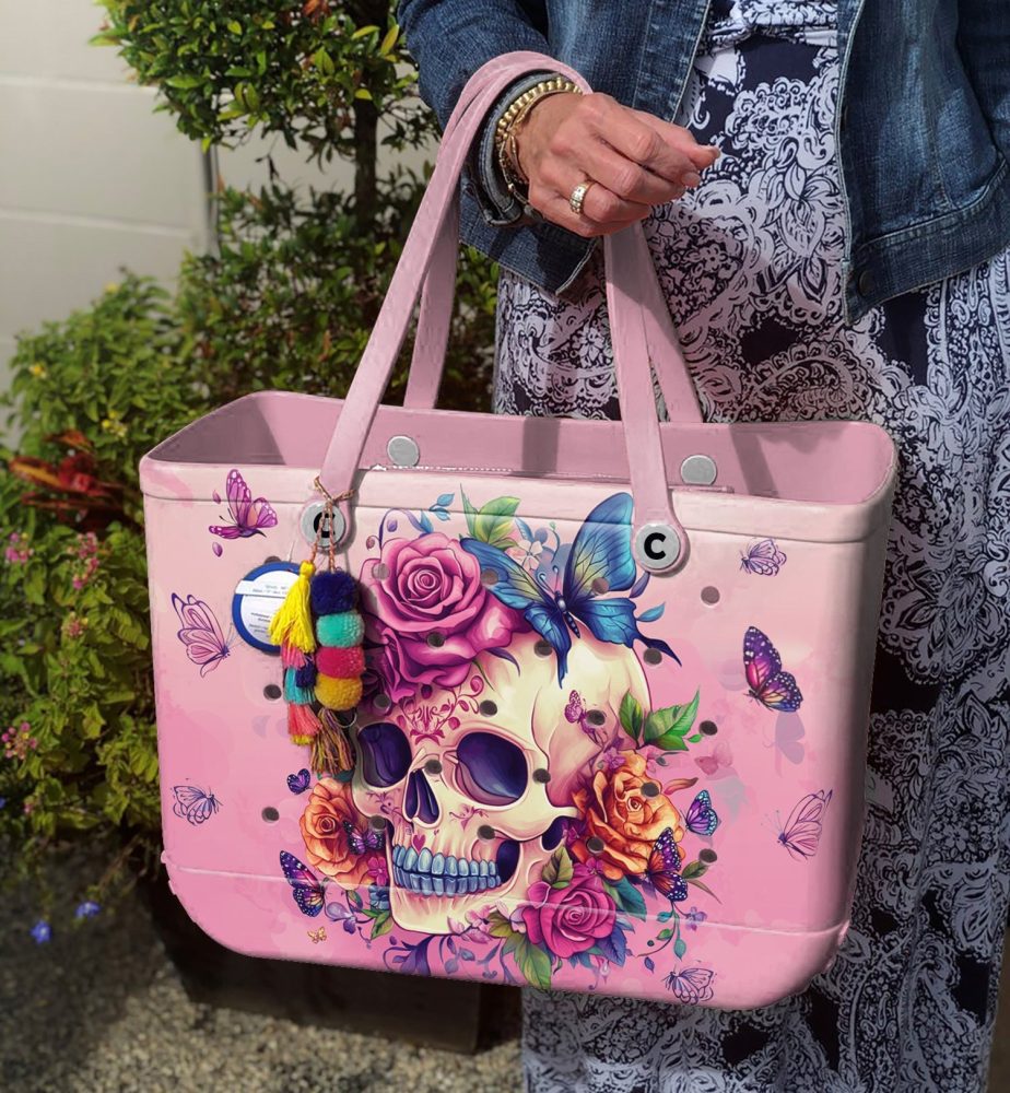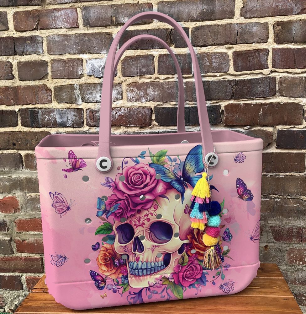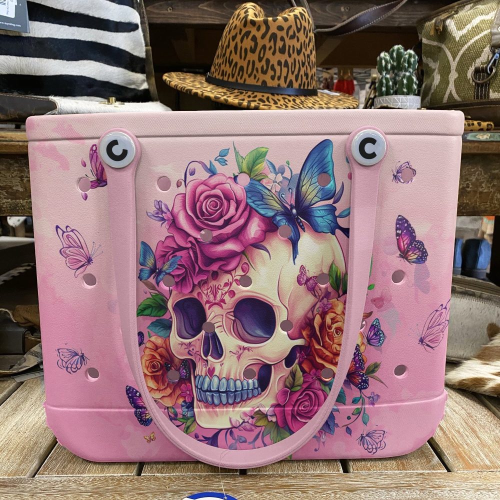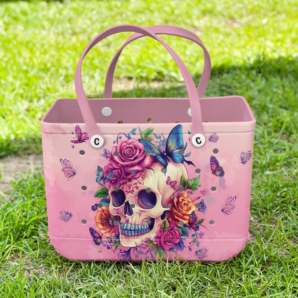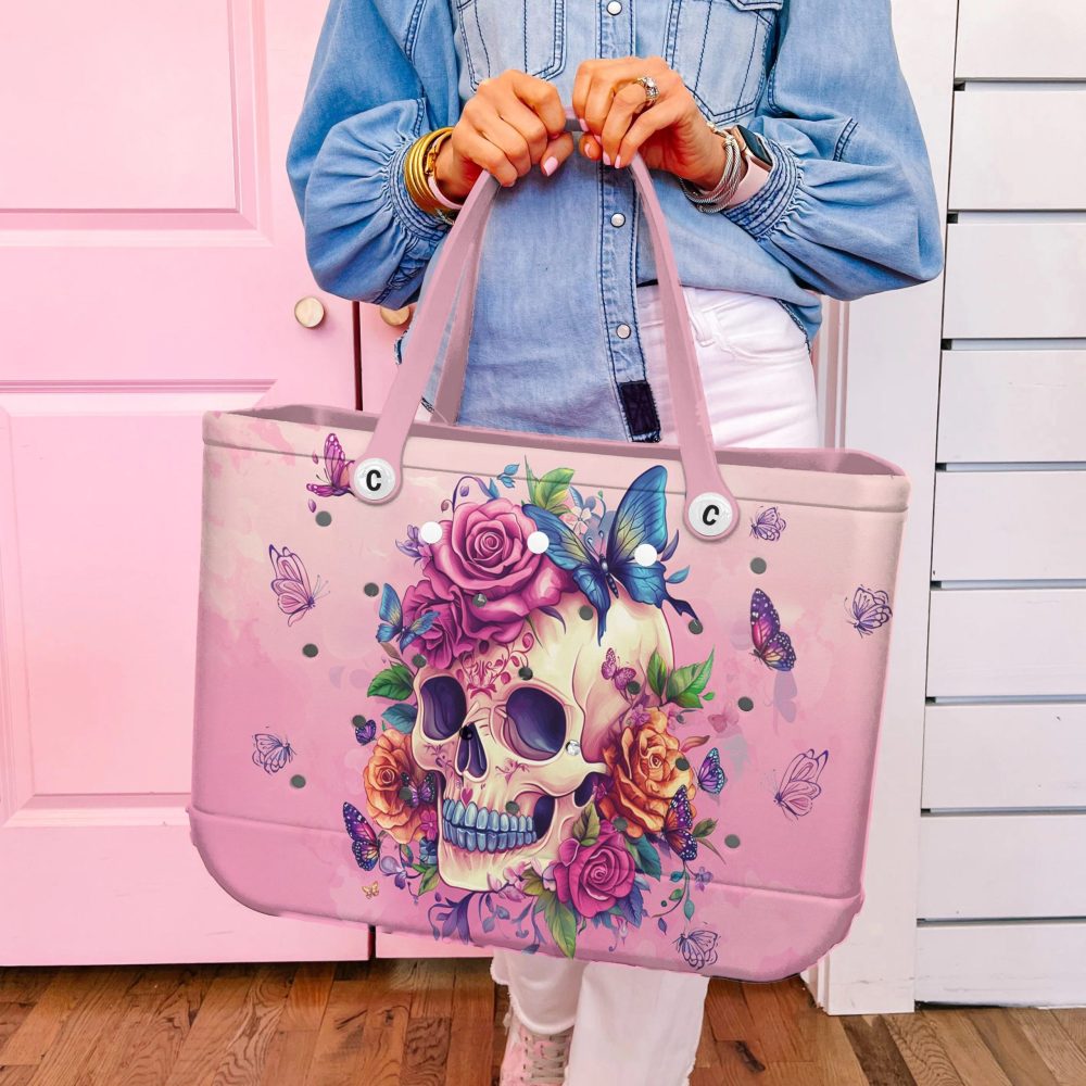 Be the first to review “Bucket Tote Bag, Limited Edition Bogg Bag, Beach Bag Blooming Skull”