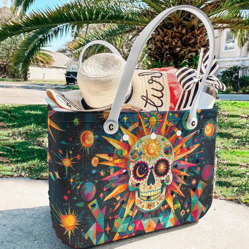 Be the first to review “Bucket Tote Bag, Limited Edition Bogg Bag, Beach Bag Cosmic Skull”