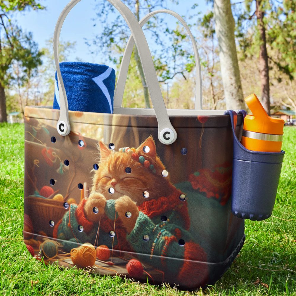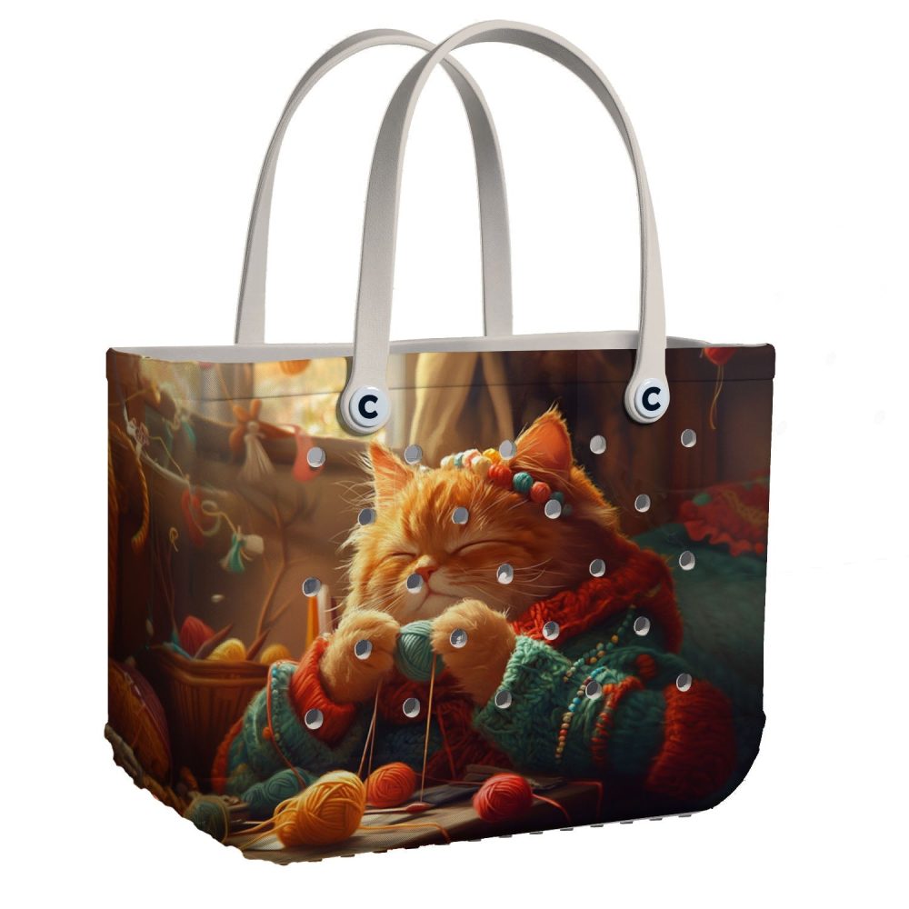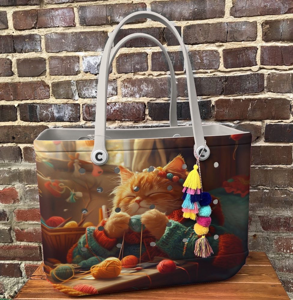 Be the first to review “Bucket Tote Bag, Limited Edition Bogg Bag, Beach Bag Purrfectly Knitted”