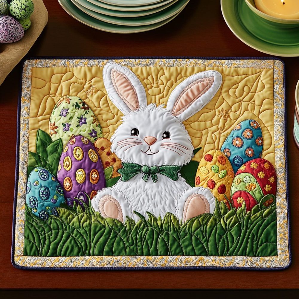 Bunny Bliss Quilted Placemats – Cute Rabbit Table Protectors, Soft Cotton Blend Dining Mats, Easy Care For Holidays