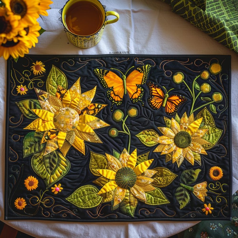 Butterflies & Sunflowers Quilted Placemat — Bright Floral Table Mat With Butterflies, Lightweight, Reversible & Garden-Ready