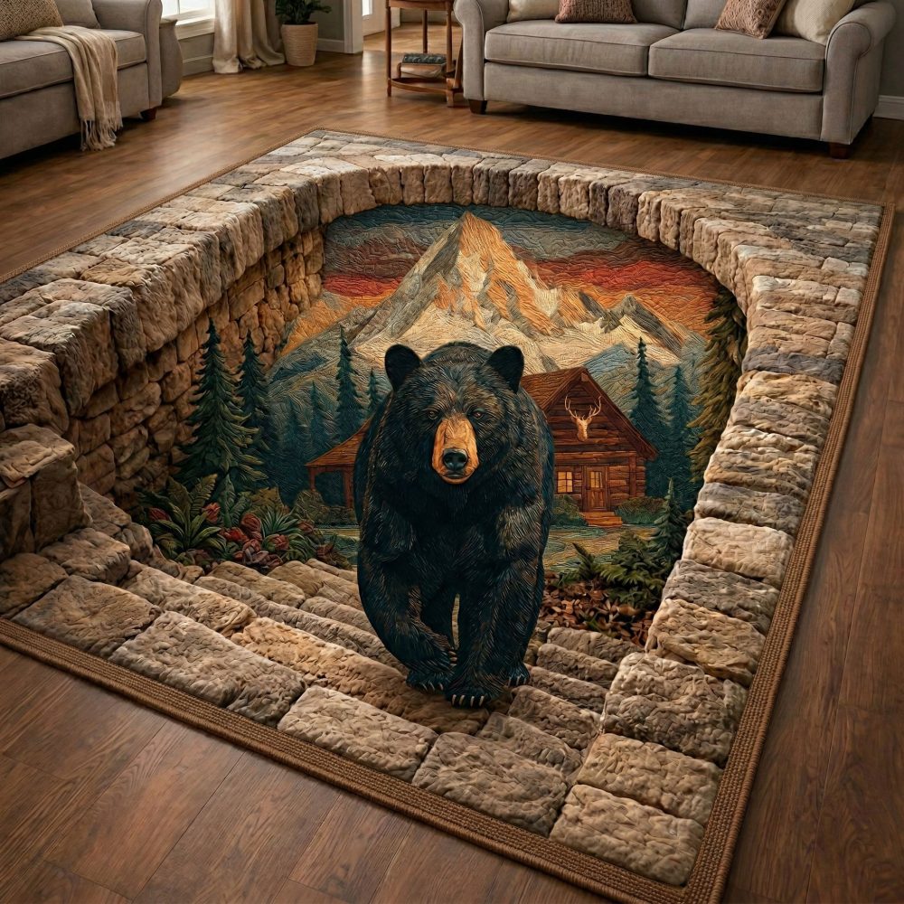 Cabin Mountain Bear Area Rug — Rustic Lodge-Inspired Kids Rug With Bear Motif, Durable Low-Pile Accent For Cabin, Nursery & Playroom Decor