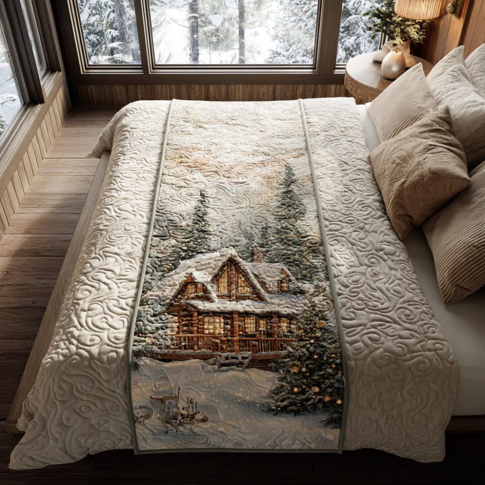 cabin wonder bed runner,quilted bed scarf,mountain lodge bedding,rustic bed runner,cabin decor,quilted accent,cozy bedroom,outdoors-inspired decor,bed styling,decorative throw