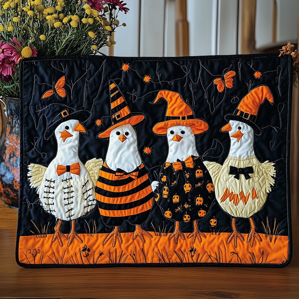 cackling chickens placemat, quilted placemat, Halloween chicken decor, farmhouse placemat, cotton placemat, fall table decor, machine washable, playful halloween