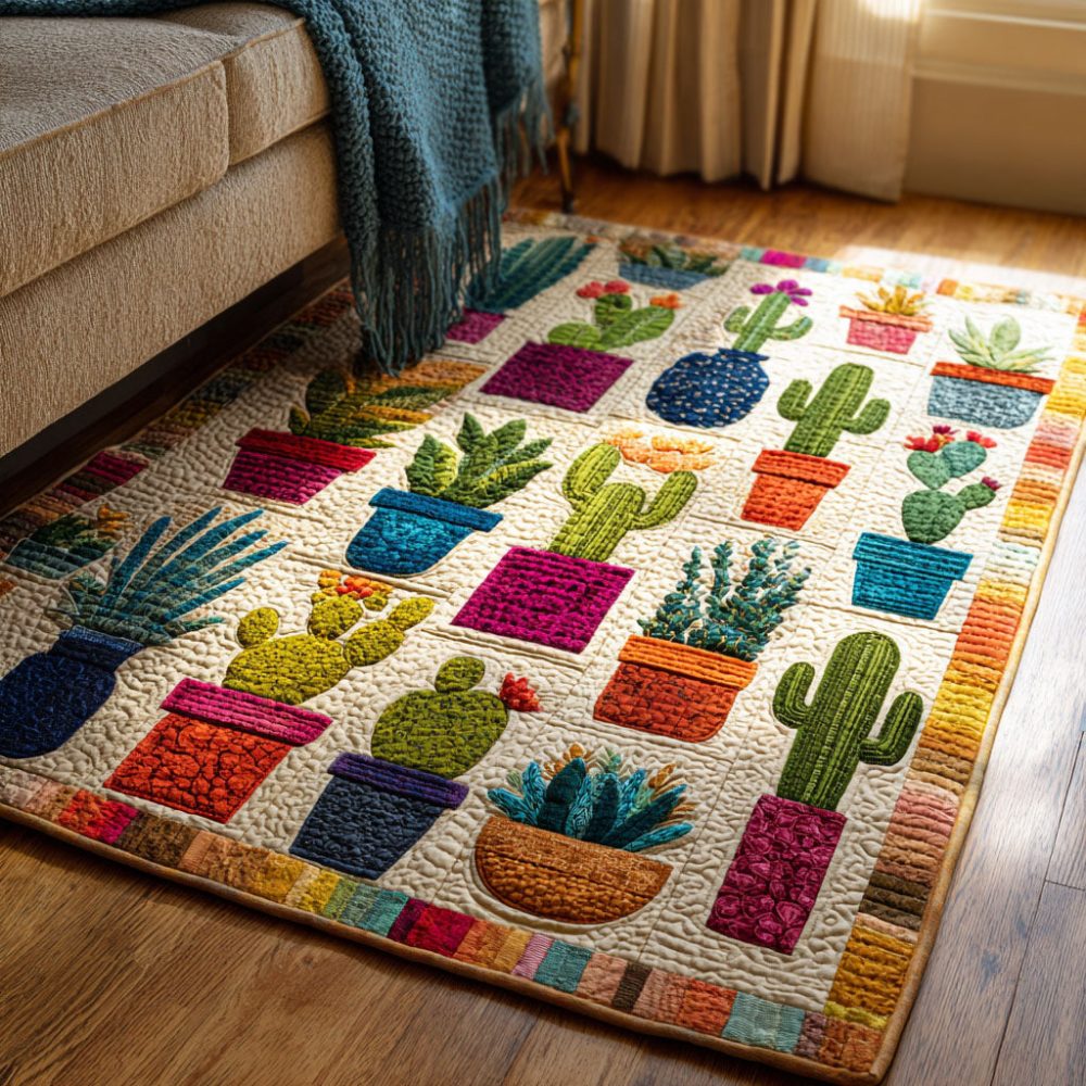 Cactus Glow Kids Area Rug — Luminous Desert Cactus Design For Nursery & Playroom, Soft Low-Pile Polyester With Secure Non-Slip Backing