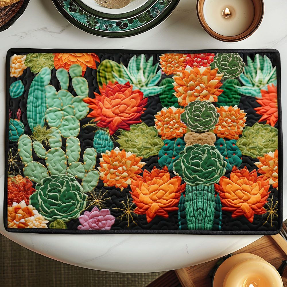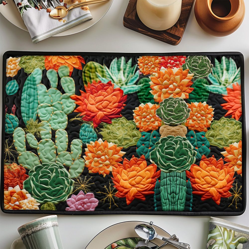cactus placemat,cactus table decor,quilted cotton placemat,kitchen placemat,botanical placemat,machine washable,heat resistant,durable placemat