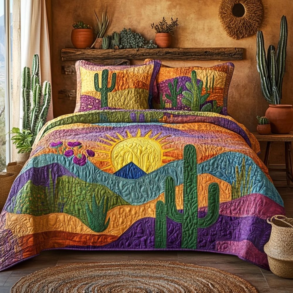 Cactus Sunrise 3-Piece Quilted Bedding Set