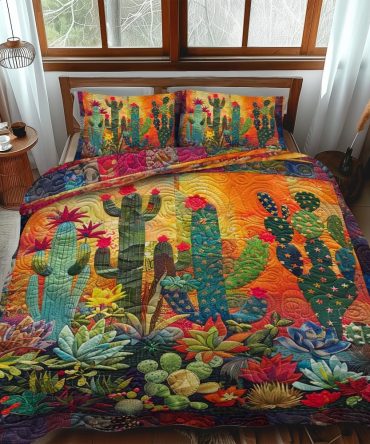 Cactus Sunset 3-Piece Quilted Bedding Set