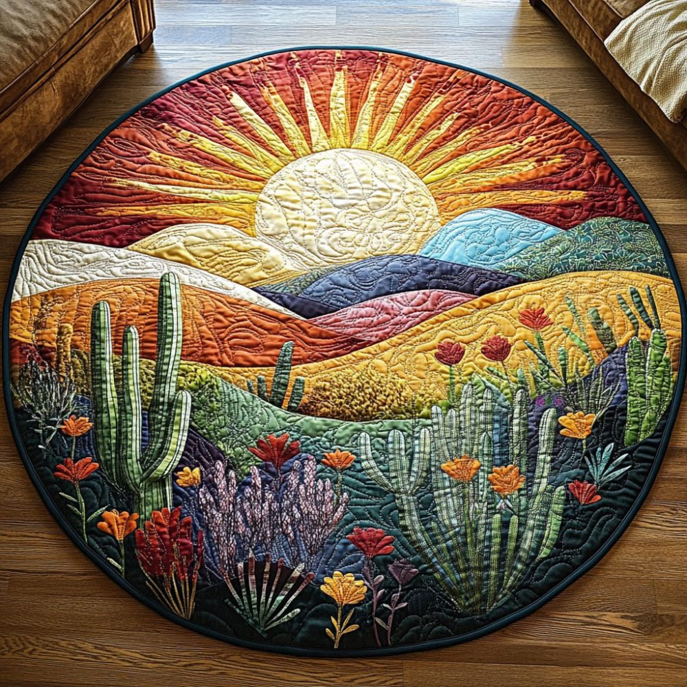 Cactus Sunset Glow Quilted Round Mat
