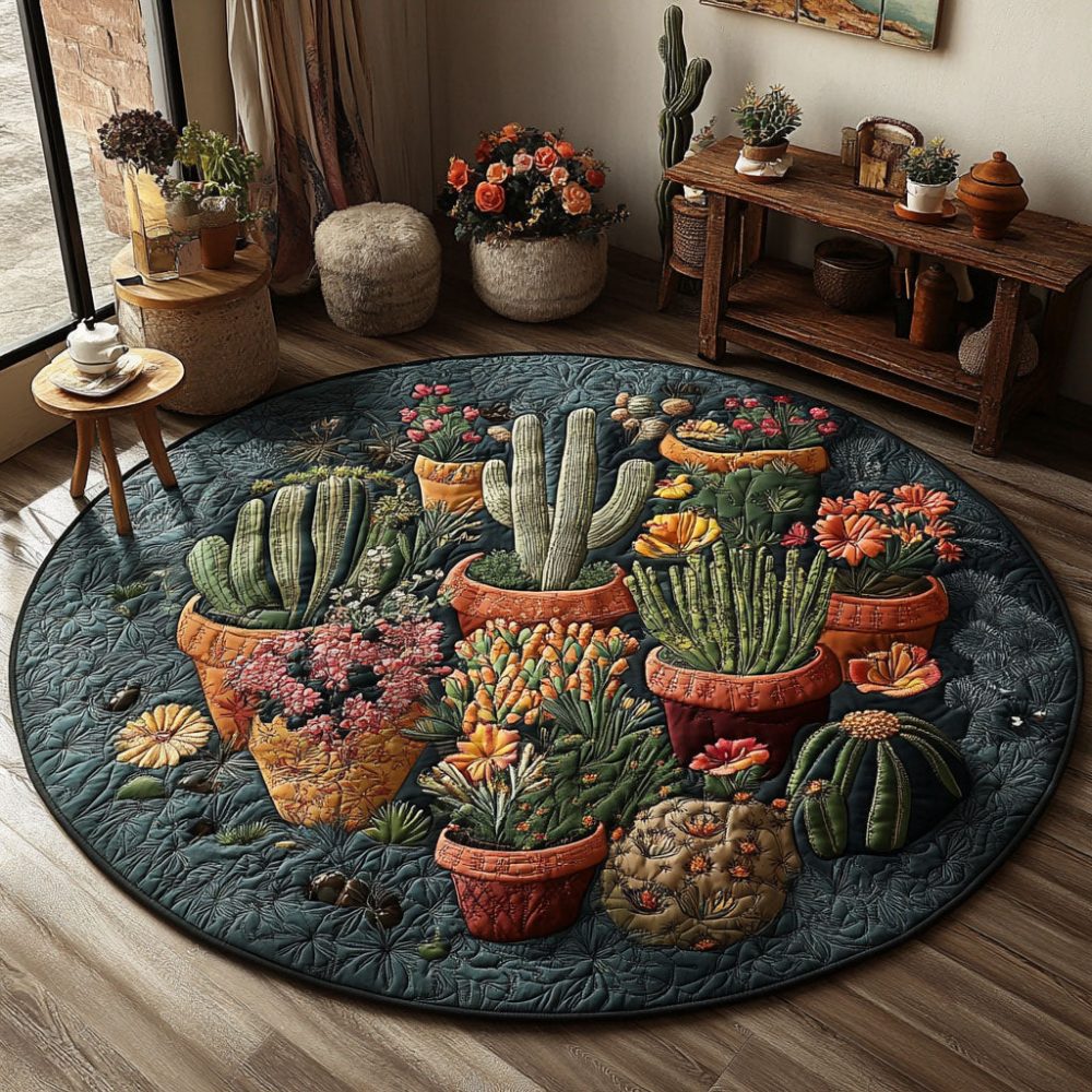 Cactus Wonderland Quilted Round Mat