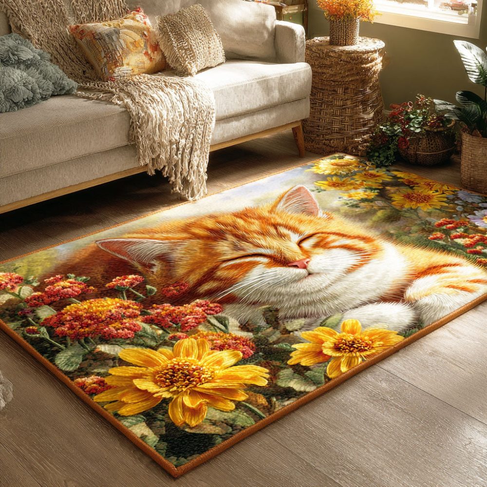 Calm Cat Rest Plush Area Rug — Cozy Soft Low-Pile Kids Rug & Pet-Friendly Accent For Nursery, Playroom, Living Room, Machine-Washable