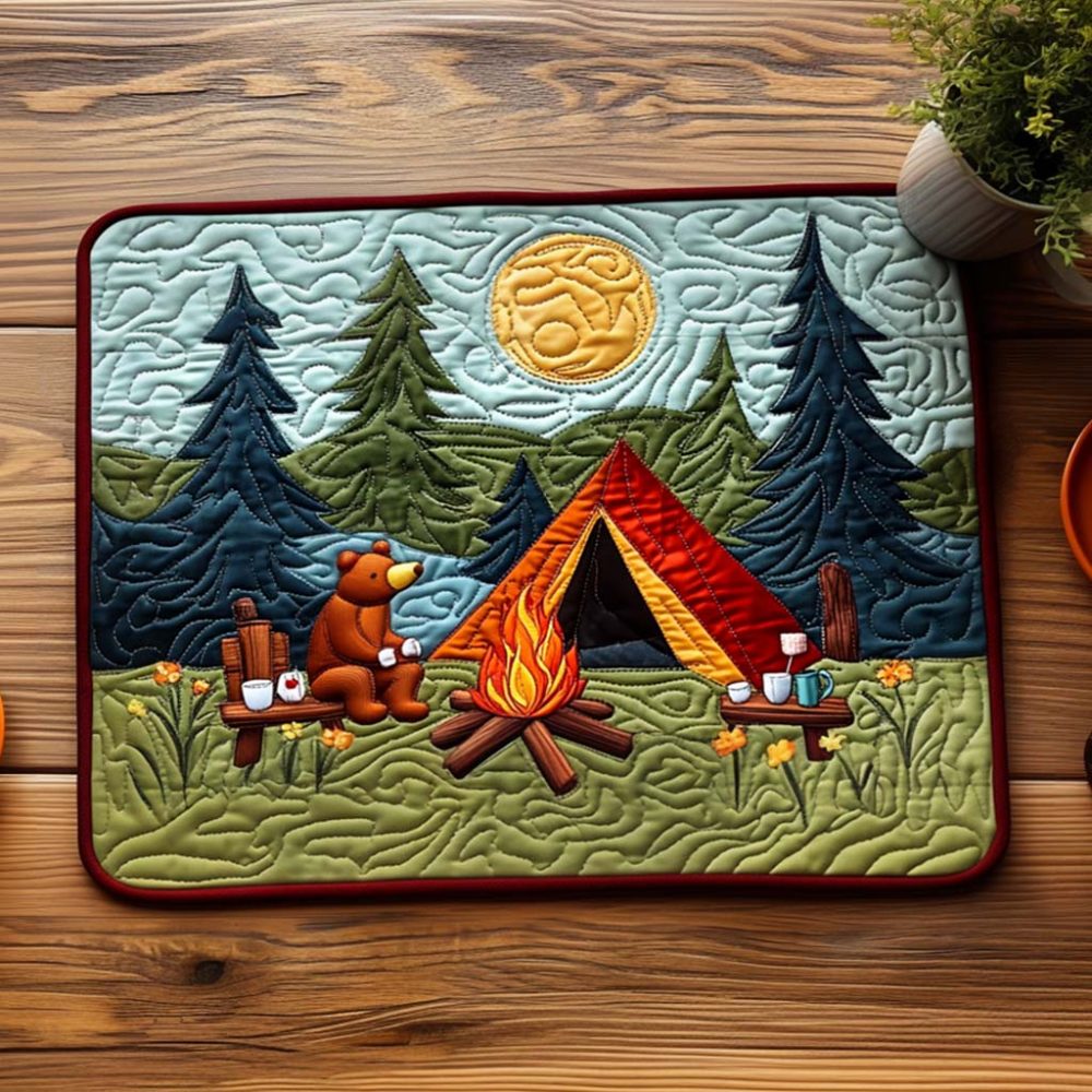 campfire placemat,quilted placemat,rustic table decor,heat-resistant placemat,family dinner placemat,washable,cozy home