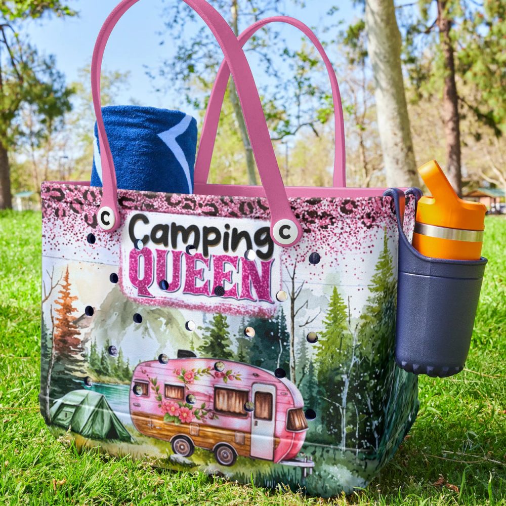 Be the first to review “Camping Queen Tote Bag – Stylish Outdoor Adventure Essential With Pink Glitter Design”