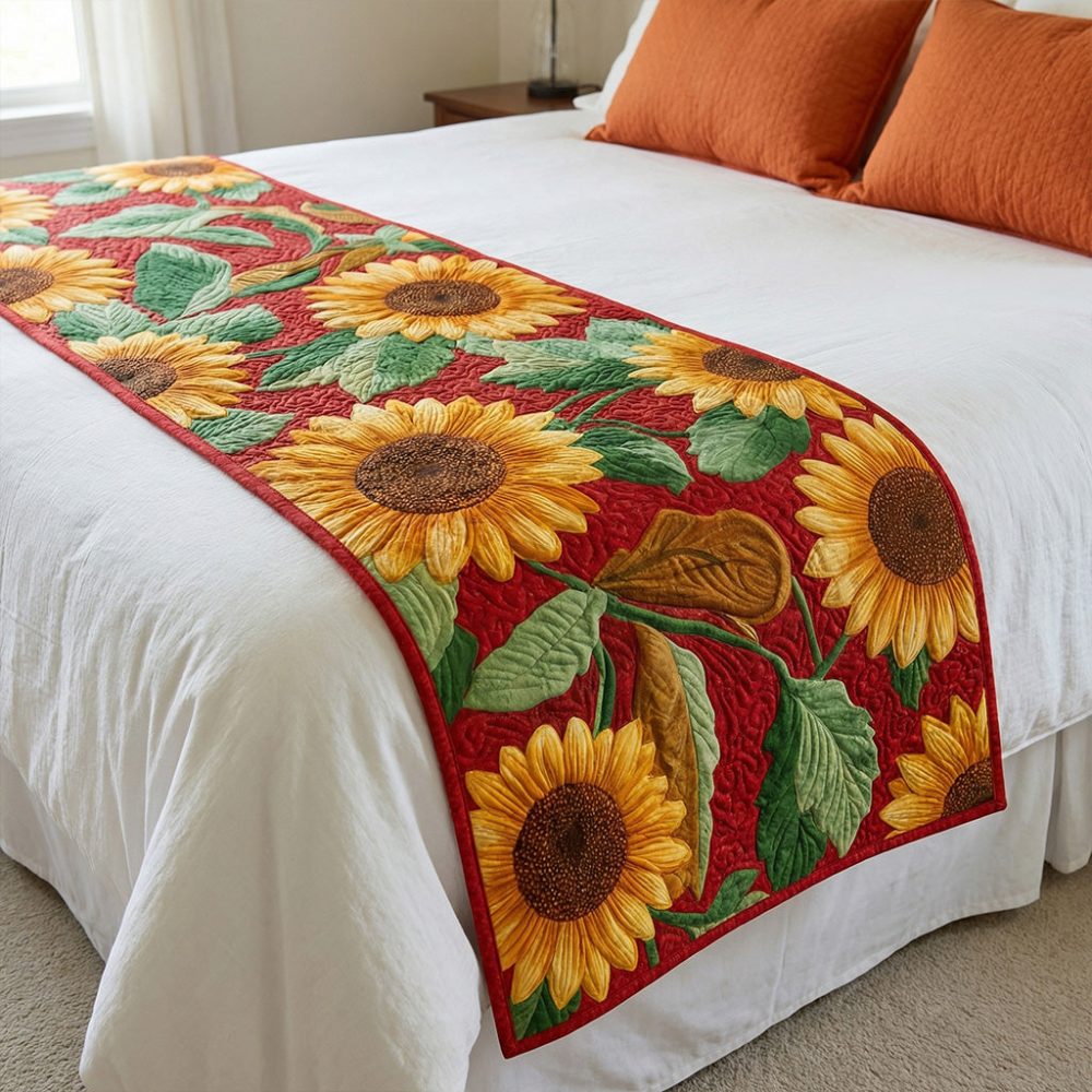 Canyon Sunrise Path Quilted Bed Runner — Earth-Tone Decorative Bed Scarf For Queen & King, Lightweight & Machine Washable — Warm Accent
