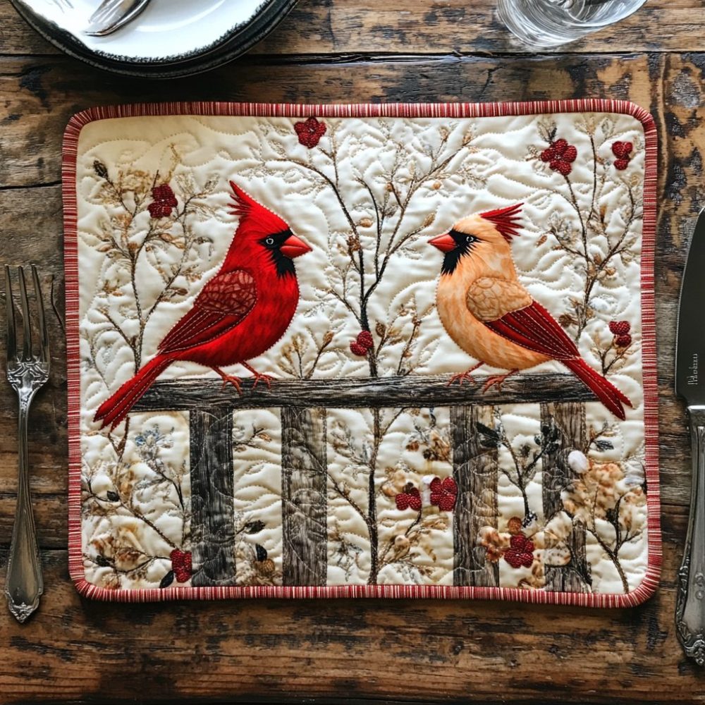 Cardinal Accent Quilted Placemat — Seasonal Bird-Themed Cotton Table Mat, Heat-Resistant, Machine Washable Dining Accent