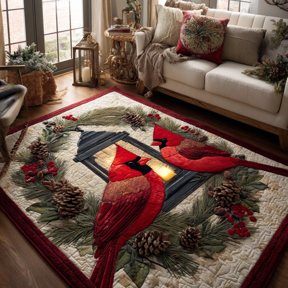Cardinal Christmas Area Rug — Elegant Red Bird Holiday Accent Rug, Soft Non-Skid Mat For Seasonal Living Room & Entry Décor