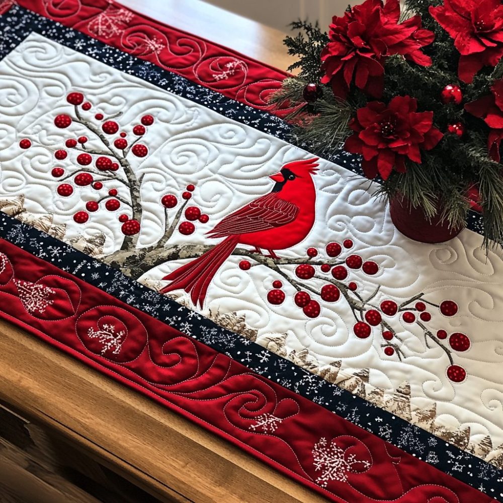Cardinal Snowy Perch Quilted Table Runner