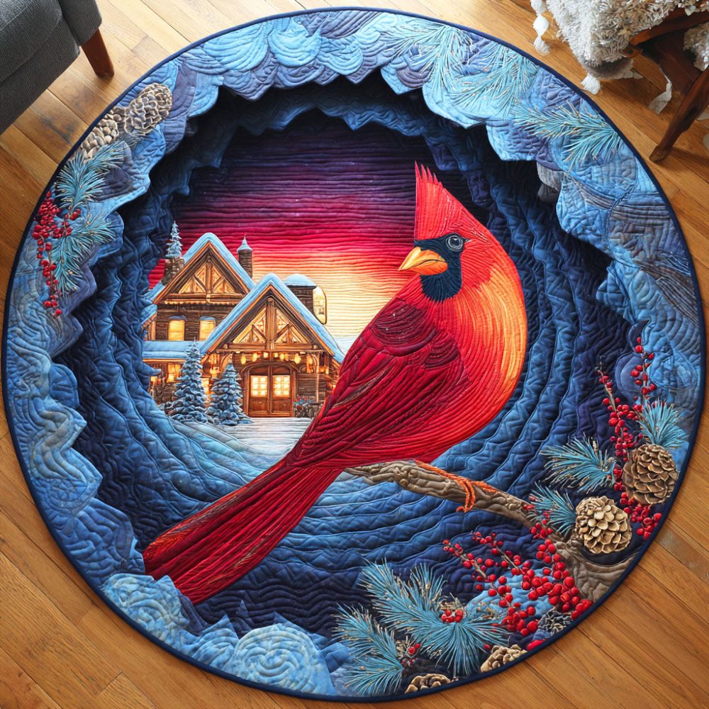 Cardinal Snowy Village Quilted Round Mat