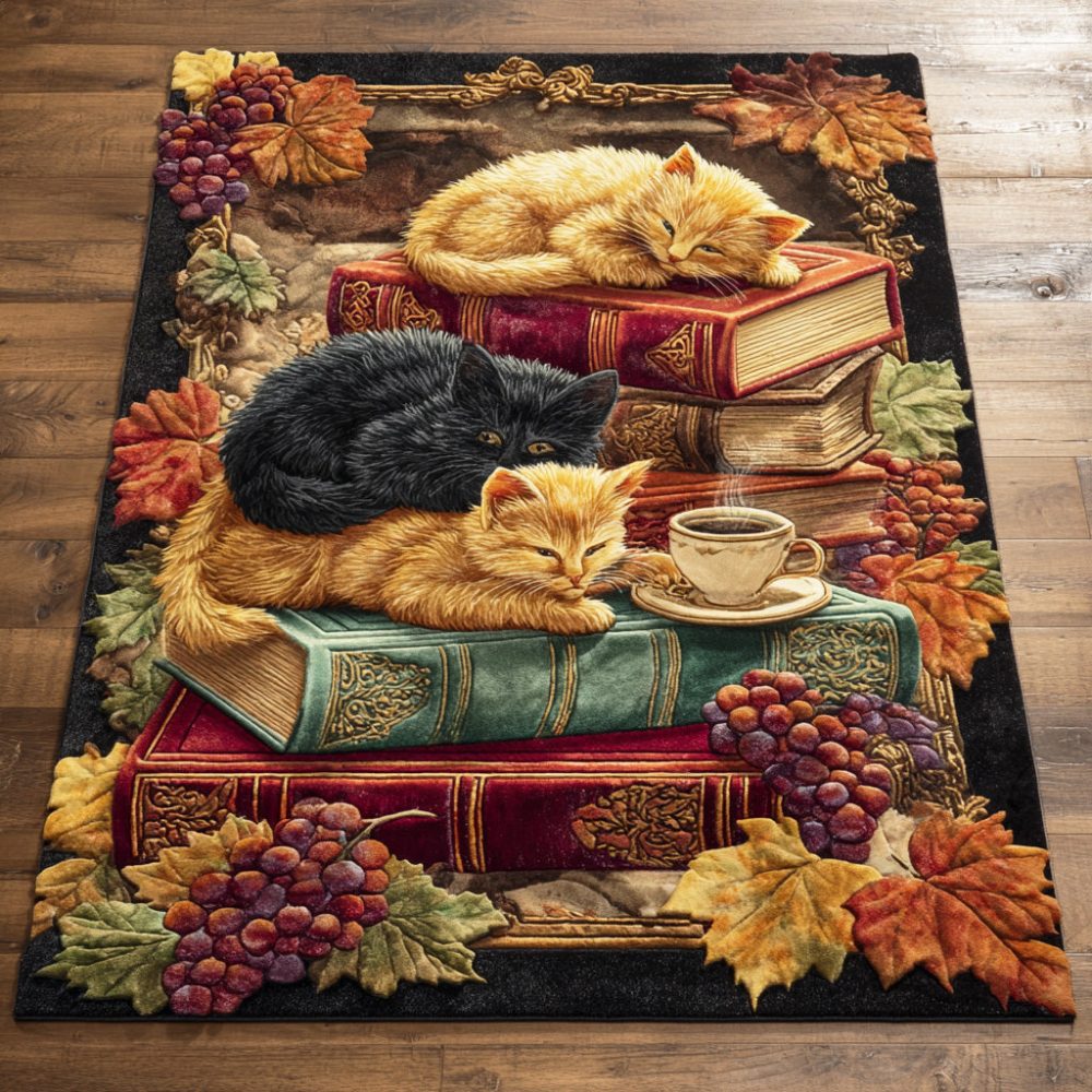 cat rug,storybook rug,illustrated cat rug,plush area rug,low-pile rug,living room rug,nursery rug,cat lovers gift
