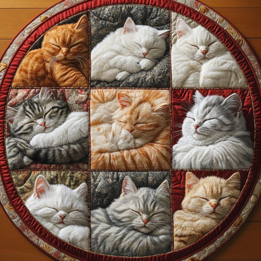 Catnap Quarters Quilted Round Mat